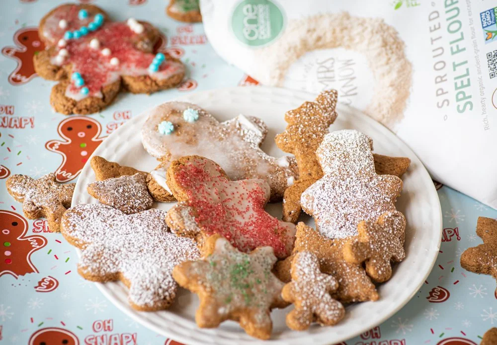 ‘Tis the season of sweetness, and few home-baked treats capture the warmth and merriment like gingerbread cutout cookies. Characterized by earthy, cozy spice, flavor that’s sweet but not too much so, and cheery, sometimes comical faces—what better invitation for Santa to stop by and linger, too? It seems like every year I experiment with slight and subtle variations on the classic, and this year I’m pretty confident I’ve landed on what’s to become the tradition from now on, beginning with a big, beautiful upgrade of One Degree Organic Foods Sprouted Spelt flour as the base.