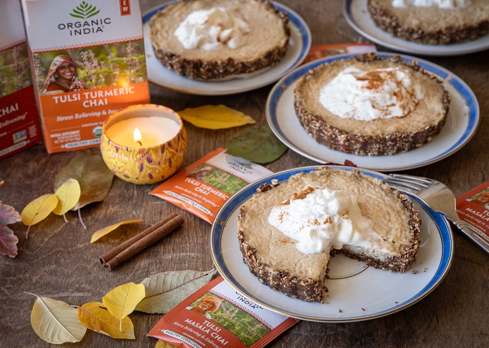 Chai Pie: This delectable, easy, vegan, custard tart is the signature cozy beverage in pie form. The easy, press-in crust made from medjool dates, oats, cacao, walnuts is delightfully versatile, too.