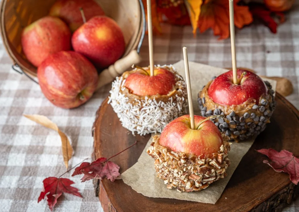 With all the heaviness in the world right now, autumn feels all the more a haven. A season of ripe, red and golden hues to bask in. All the seasonal joys seem to extend cheerful invitations. These date caramel apples are no exception, and they’re exceptionally fun. Get playful with the process of making them. Maybe you’ll even fall in love.
